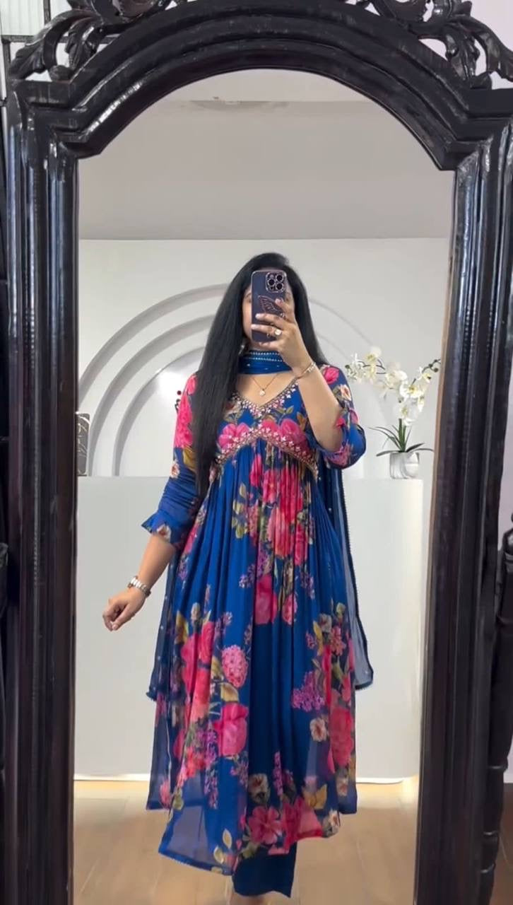 Floral Printed Embroidered Worked Designer Stunning Festival Gown